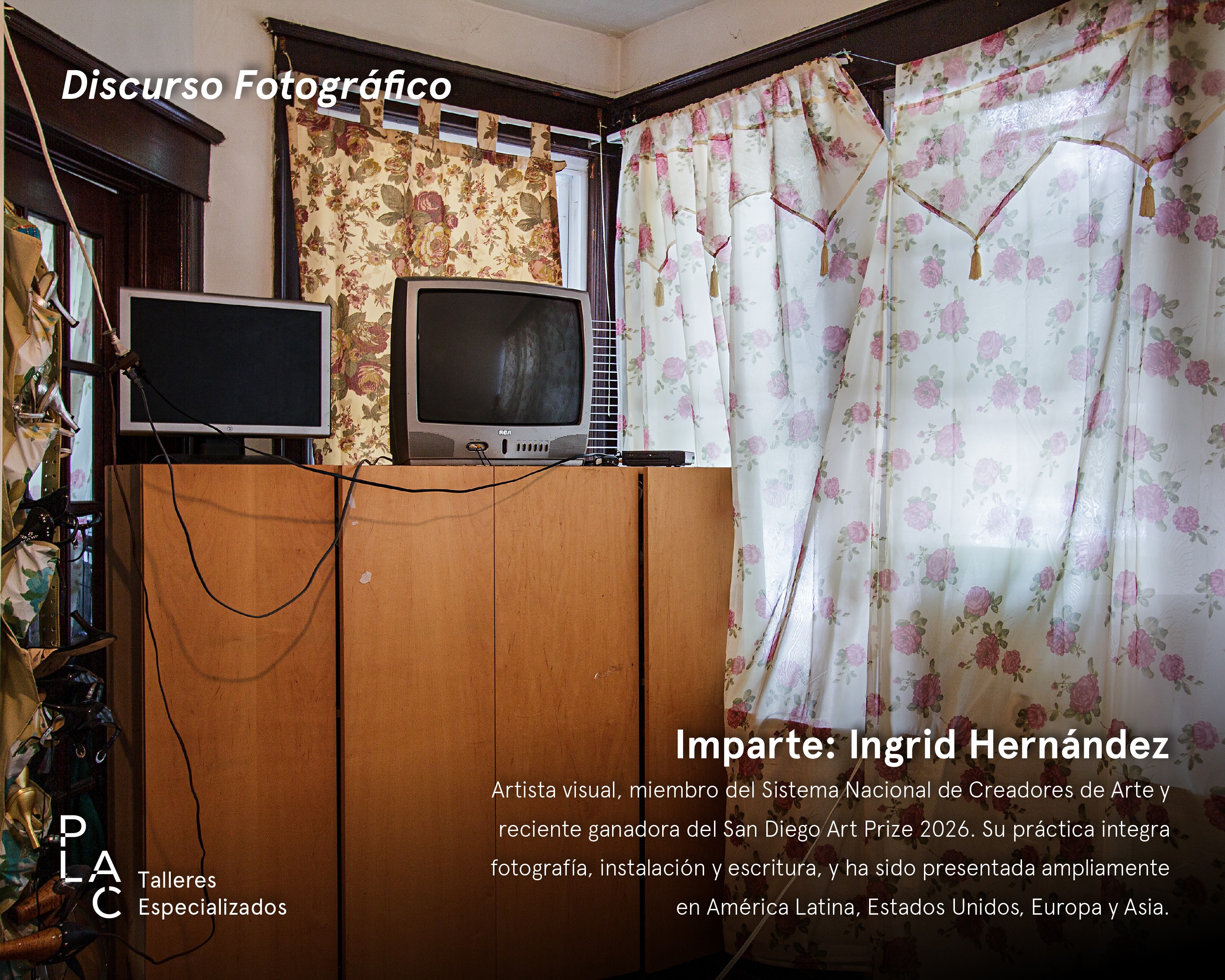 Esta actividad forma parte de los Talleres Especializados en Plataforma, un programa de encuentros y sesiones formativas con artistas y creadores de amplia trayectoria. En esta ocasión acompaña Ingrid Hernández, artista visual, miembro del Sistema Nacional de Creadores de Arte y reciente ganadora del San Diego Art Prize 2026. Su práctica integra fotografía, instalación y escritura, y ha sido presentada ampliamente en América Latina, Estados Unidos, Europa y Asia.