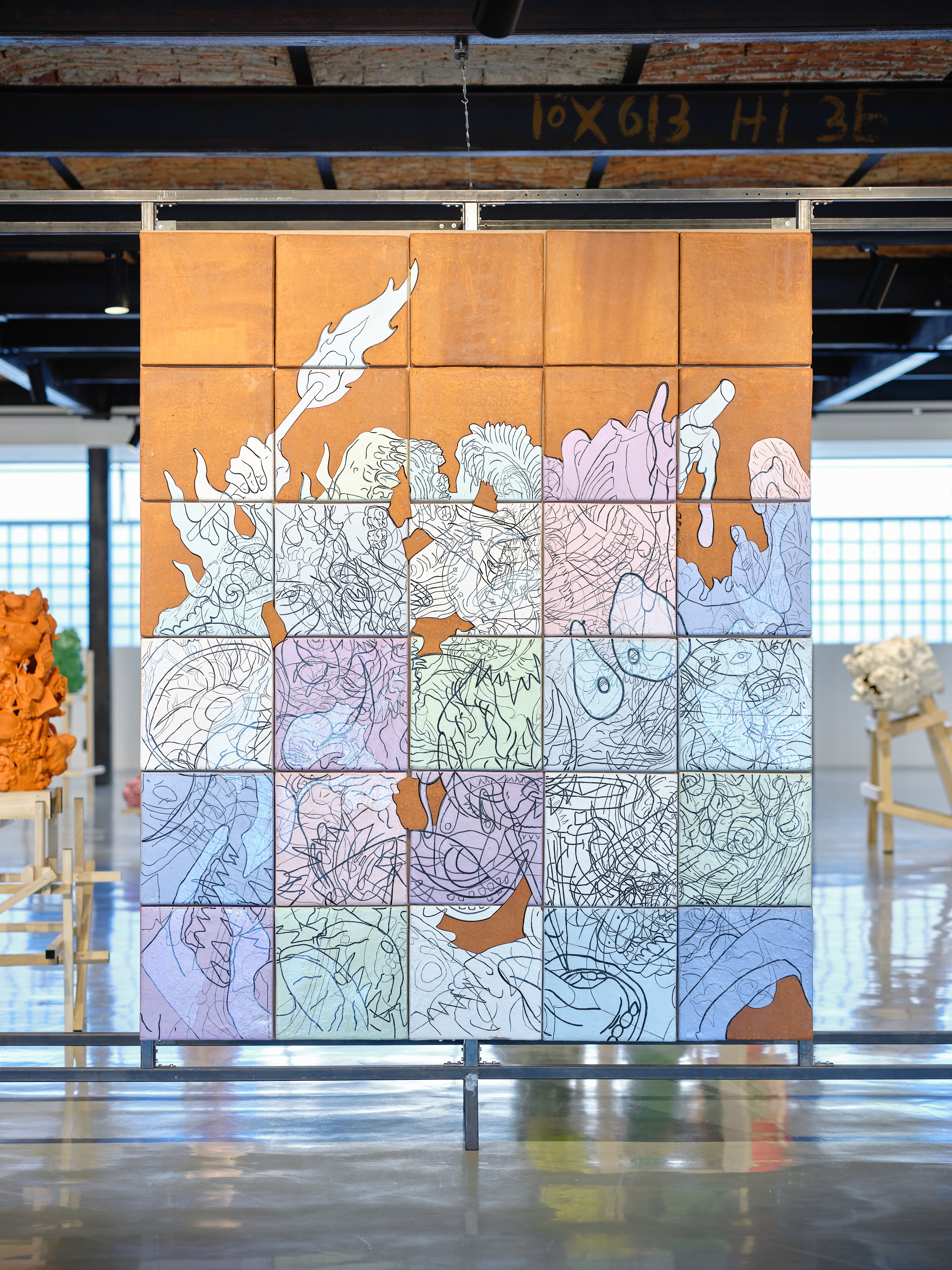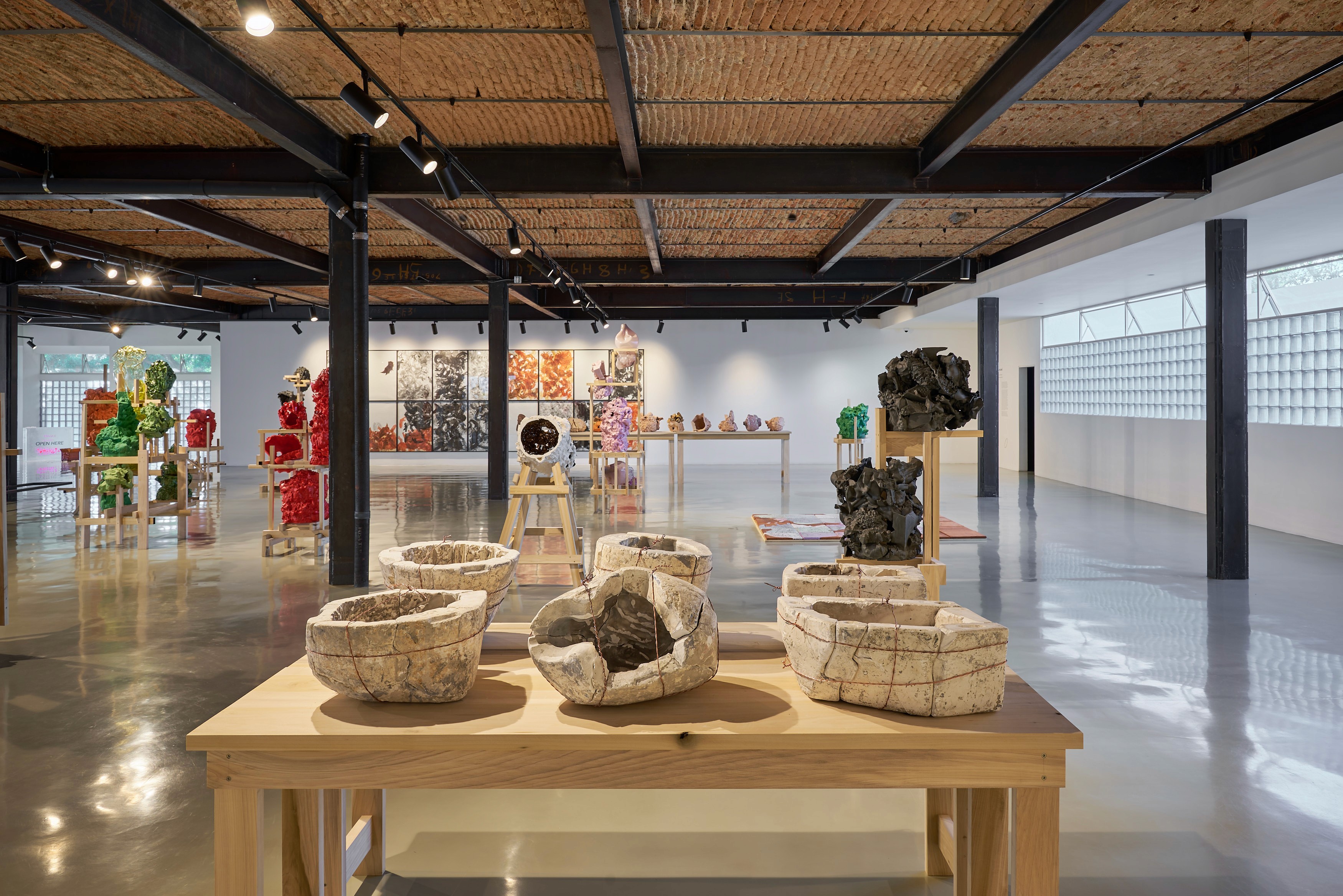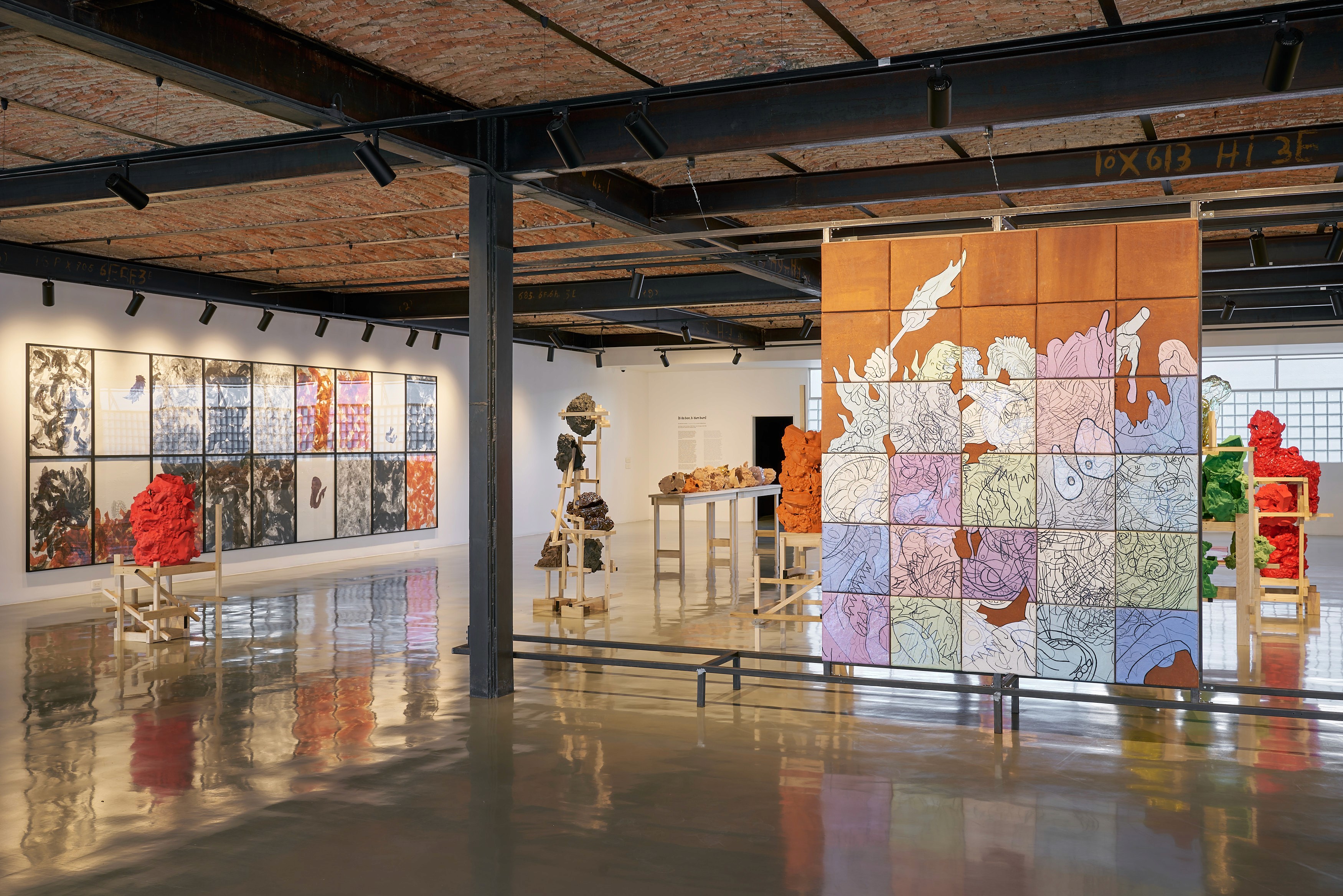 Las piezas de esta exposición sugieren un flujo continuo de creación, deformidades cambiantes y contenedores perpetuamente colmados. Flotamos, a veces pasivamente, a veces a contracorriente, en un océano tormentoso de líneas, colores y texturas, donde toda forma fallida se rehace y cada fragmento se reinventa. En esta deriva descubrimos que la creación surge del exceso y de la interferencia, y que el hecho de habitar relaciones parasitarias en y con la historia, los materiales y la memoria es, en sí mismo, un acto generativo.