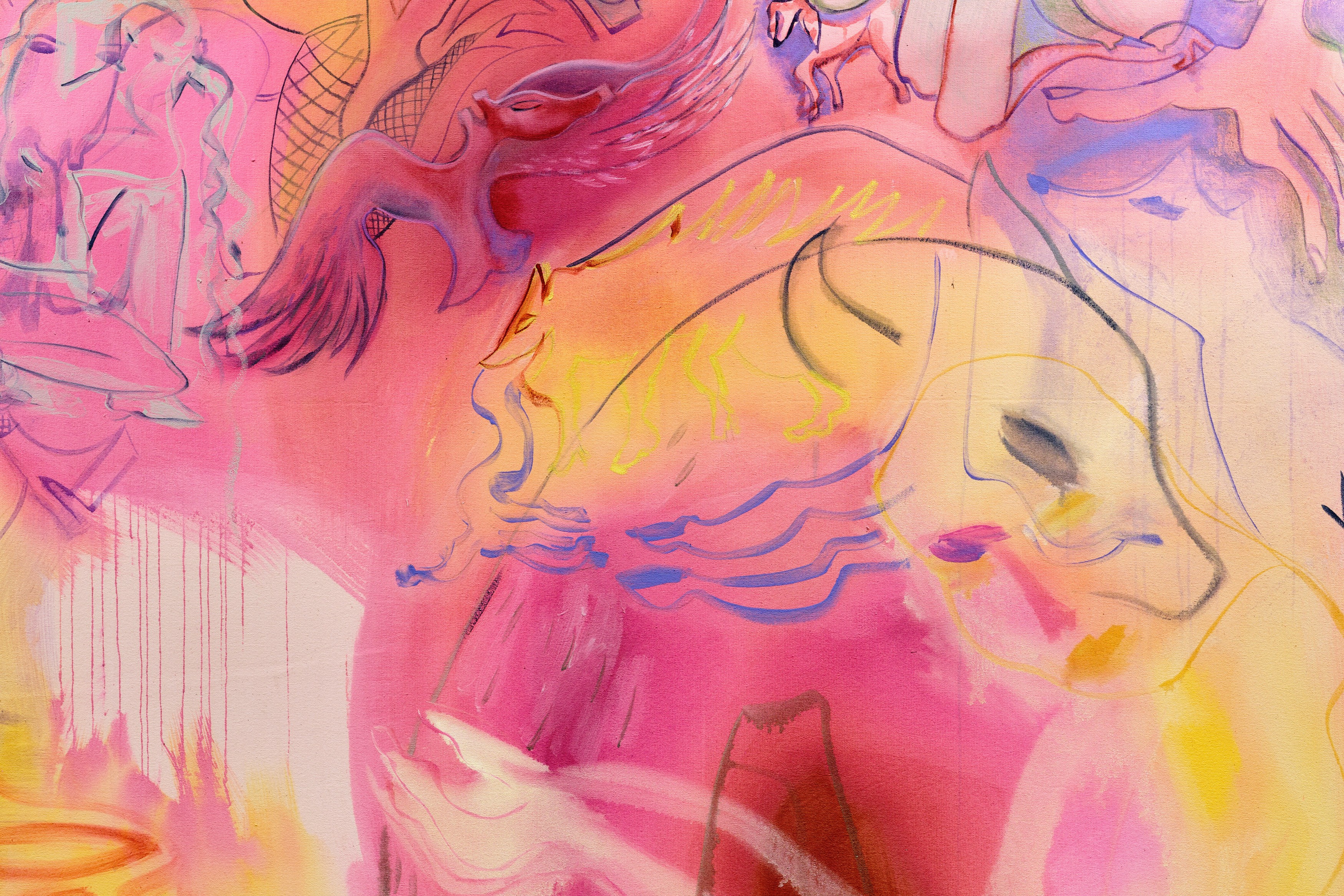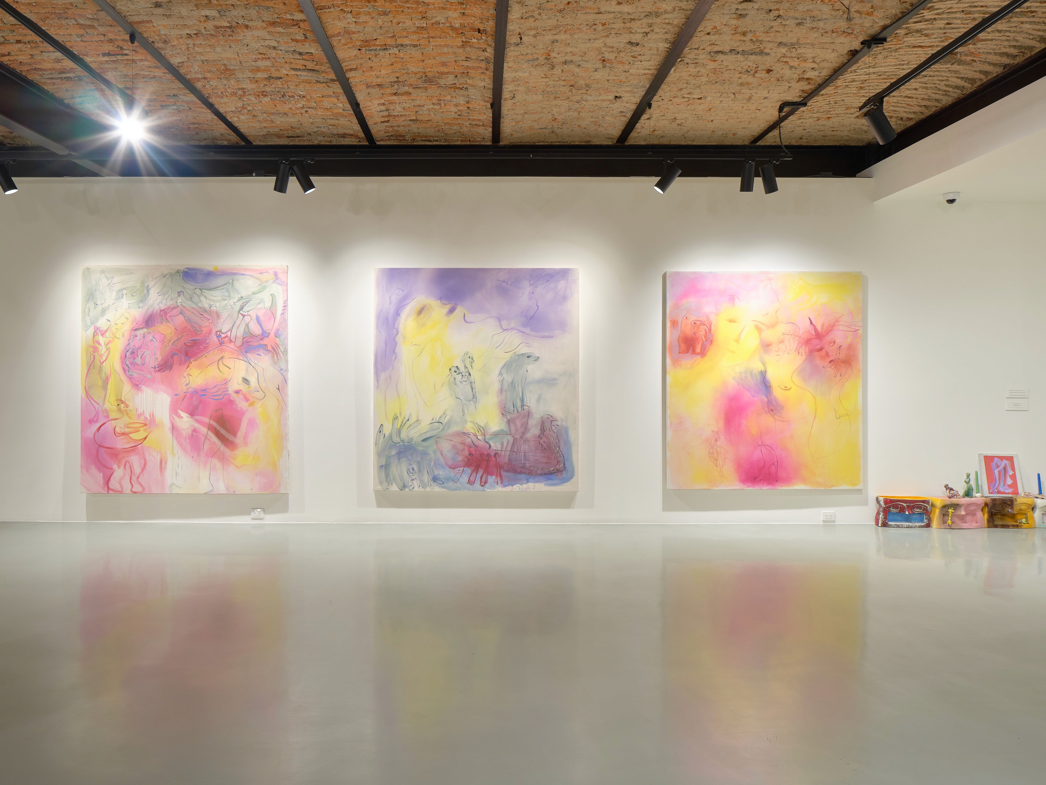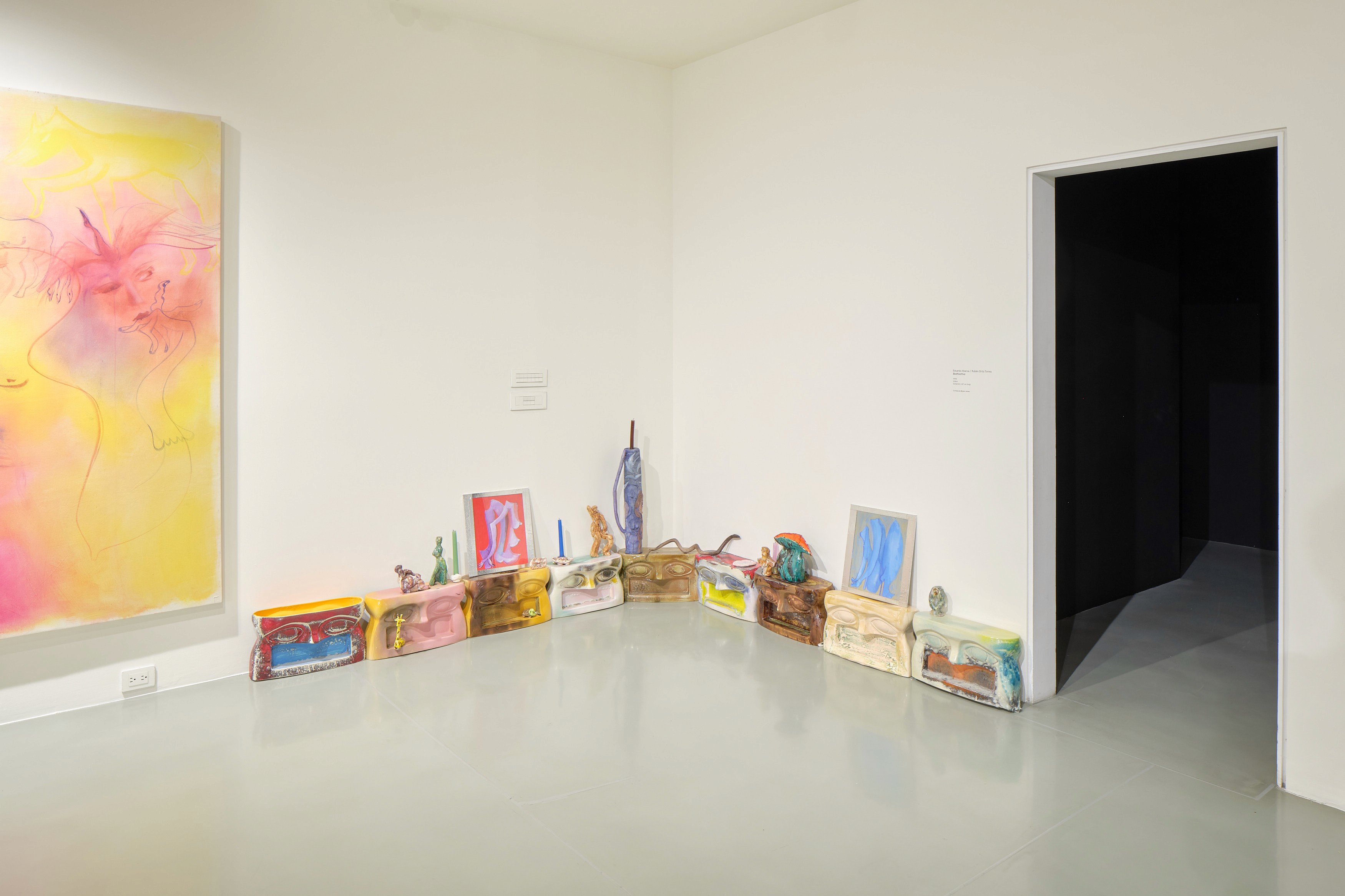 Trece lunas de Chelsea Culprit (Paducah, EE. UU. 1984) es una exposición compuesta por esculturas y pinturas que propone una cosmología feminista alterna, donde formas arqueológicas, figuras místicas y arquetipos del inconsciente colectivo se reconfiguran en manifestaciones contemporáneas de liberación y autonomía corporal. Inspirada en los ciclos lunares, las diosas arcaicas y los rituales domésticos, Culprit construye una mitología propia desde los cuerpos que sostienen la vida cotidiana: bailarinas, meseras, cuidadoras, madres. Sus cuerpos —fracturados y posteriormente ensamblados— trascienden la narrativa individual para formar una constelación de diosas que invocan otras formas de existencia libre y plural.