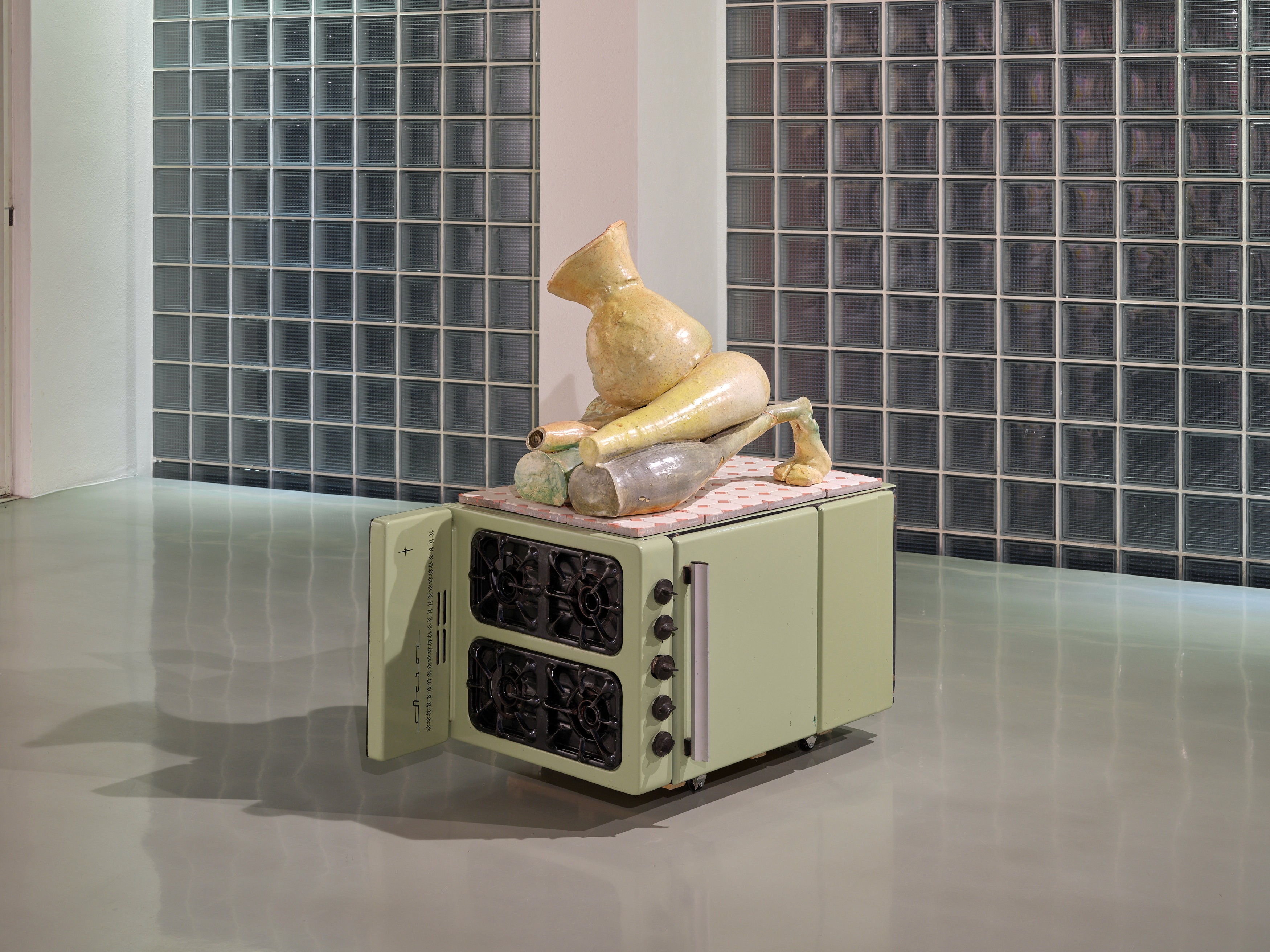 Cada escultura es un ecosistema: parte tierra, parte cuerpo, parte cosmos. Arena, arcilla, anémonas, sandías y luz de luna conviven en un mismo plano. Durante su residencia en Cerámica Suro, en Guadalajara, Culprit trabajó junto a los artesanos de la fábrica, aprendiendo sus técnicas y adaptando su ritmo a la cadencia colectiva. Las piezas fueron modeladas bajo la luz de la luna llena entre noviembre de 2024 y octubre de 2025, siguiendo un calendario ritual que vincula la producción artística con los ciclos sinódicos del cielo.